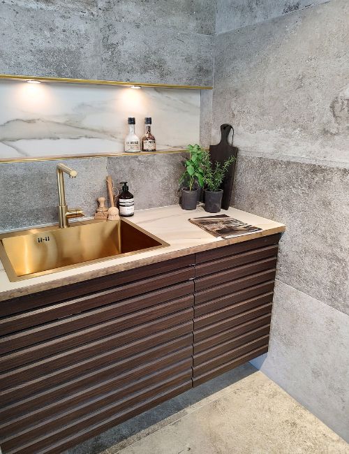 - Bredt udvalg af fliser og klinker – fra eksklusive marmorlook til tidløse beton- og trælook-fliser.