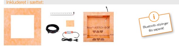 En af vores forhandlere tilbyder færdige brusehylde-kasser, der monteres i væggen og efterfølgende flisebeklædes. De fås i forskellige størrelser og udgaver – både med lys og modeller uden.