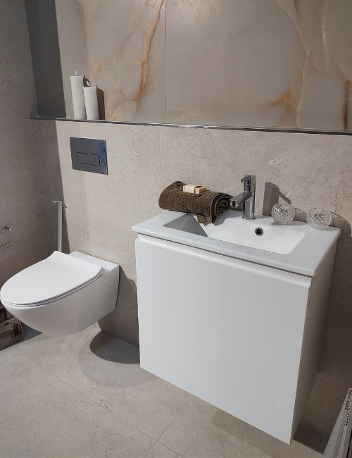 Det handler ikke kun om at spare plads, men om at skabe et badeværelse, der føles let, funktionelt og gennemført – uanset rummets størrelse.