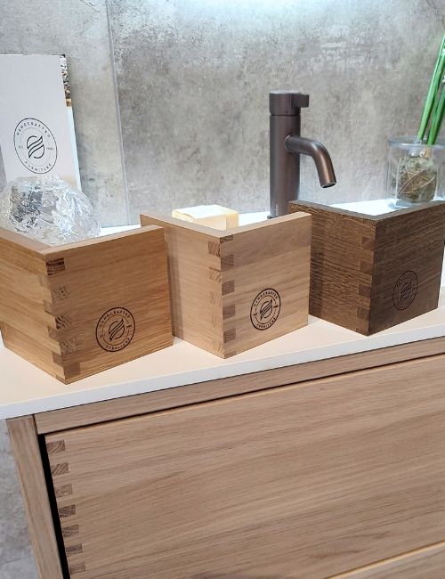 I et fingertappet badeværelsesmøbel er hver samling et lille stykke synligt håndværk. De præcise tapper giver styrke, stabilitet og en æstetisk detalje, der afslører, at her er tale om et møbel, der er bygget til at holde. Den slags detaljer kræver både tid og erfaring – og det er netop dét, der gør forskellen på industrielt producerede møbler og rigtigt snedkerarbejde.